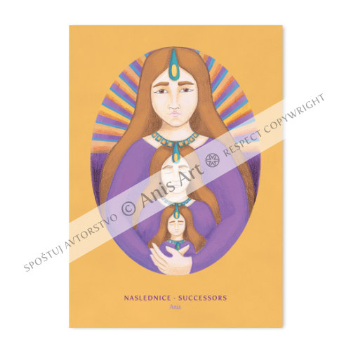 Inspirativna kartica Naslednice je ena izmed ilustracij iz serije Naravna ženskost izpod Anisinih rok. Serija slavi žensko energijo in predstavlja različne arhetipe ženskosti. Kartica je namenjana vsakodnevni inspiraciji ali kot darilo za posebne osebe in priložnosti. Na zadnji strani je prostor za dragoceno posvetilo. Kartico prejmete v darilni kuverti.